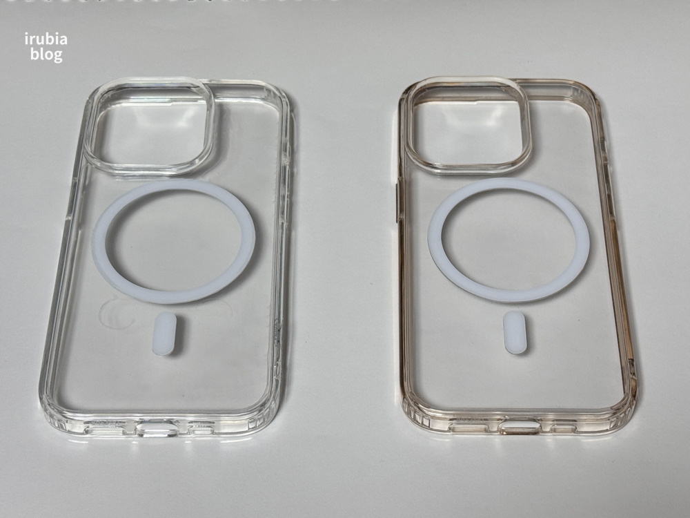 2025년 2월 21일날에 케이스를 2개 사서 하나는 그날부터 지금까지 계속 장착하여 사용했는데, 한 번도 안썼던 제품과 비교해보았습니다.